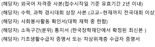 4) 성적 우수자 우대, 소재 관련 전공자 우대, 사회적 배려 대상자 우대