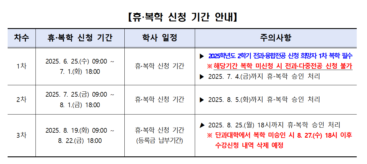 [학사]2026학년도 1학기 추가 휴,복학 신청 기간 안내