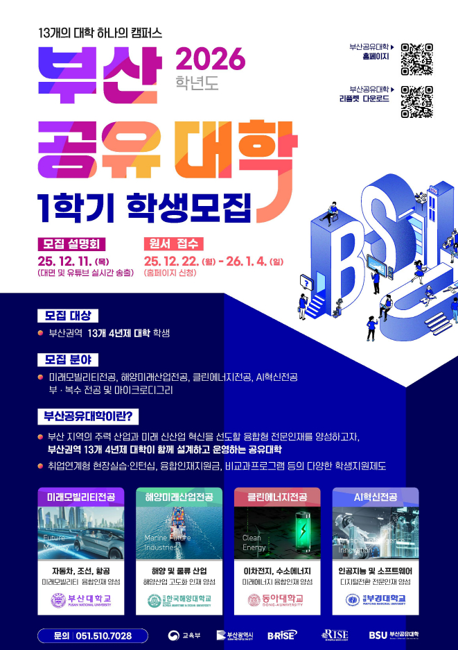 부산공유대학 2026학년도 1학기 학생모집 안내