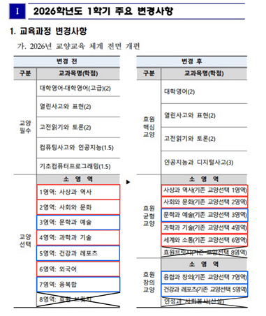 7. 교양필수 2026 교육과정 주요 변경 사항